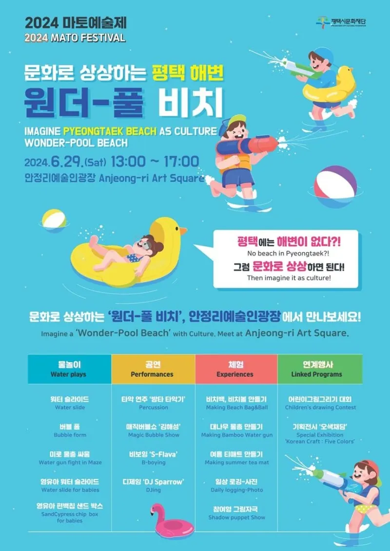 #평택 #평택시 #평택이 #마토예술제 #평택해변 #원더-풀비치 #안정리예술인광장 #문화상상 #물놀이 #워터슬라이드 #비보잉 #비치볼만들기 #연계행사