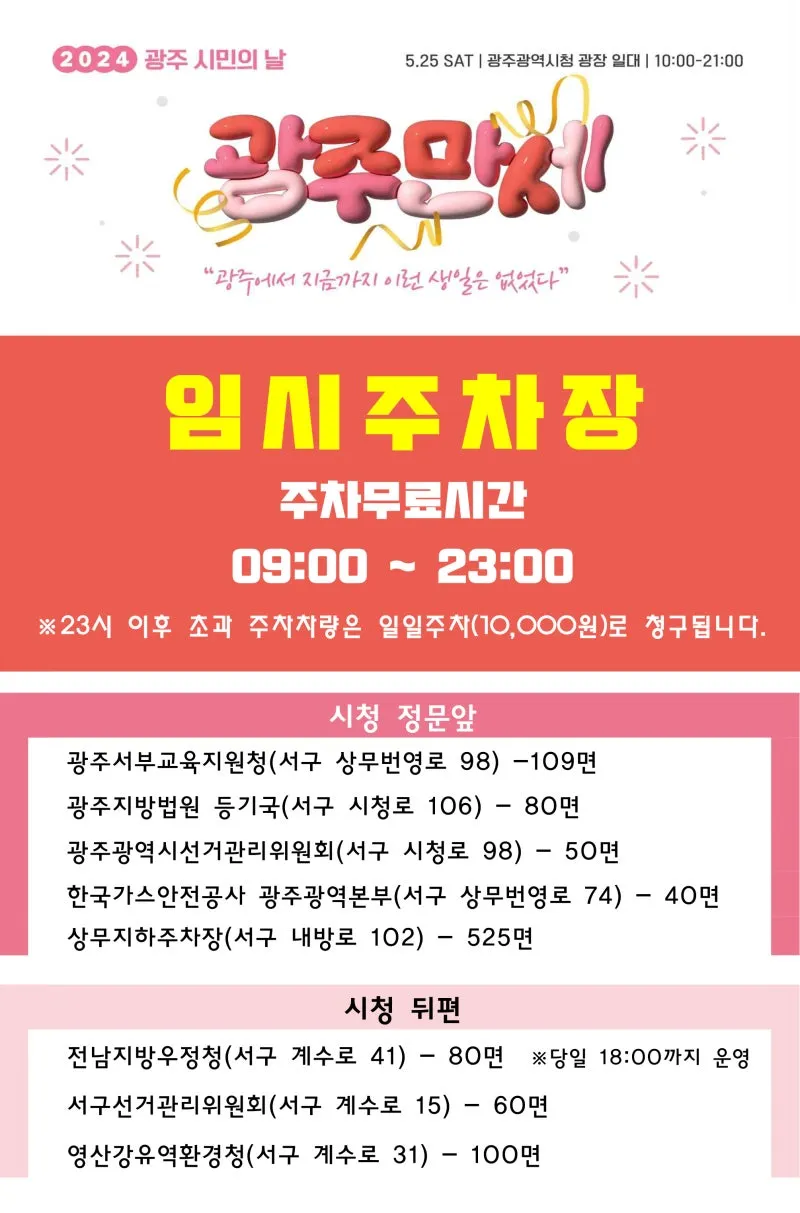 편하게 주차하고 신나게 놀아요! 광주시민의 날 임시주차장 운영