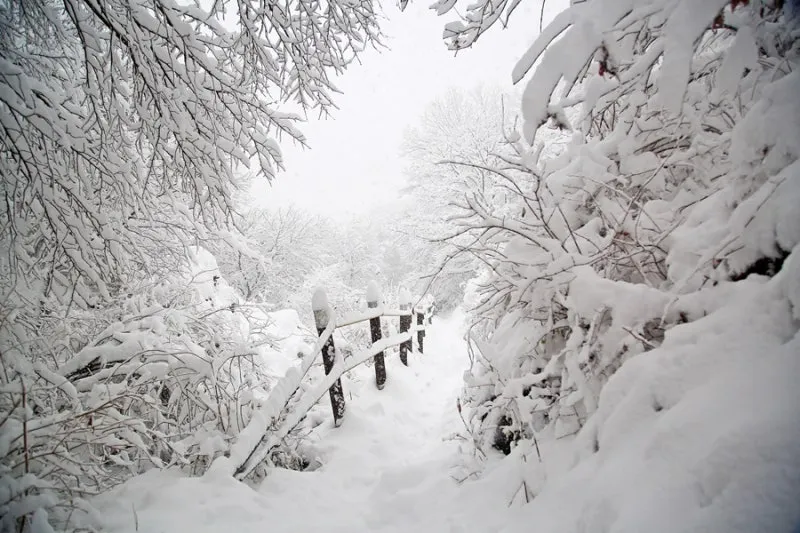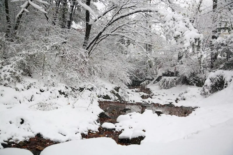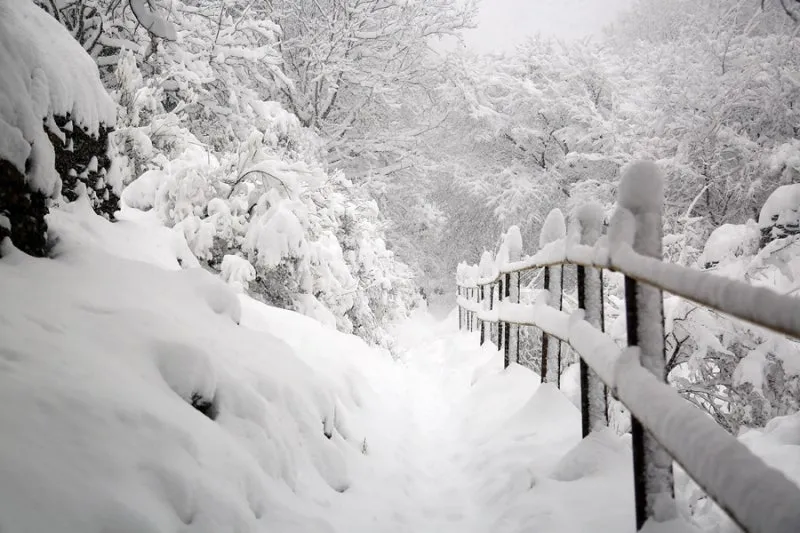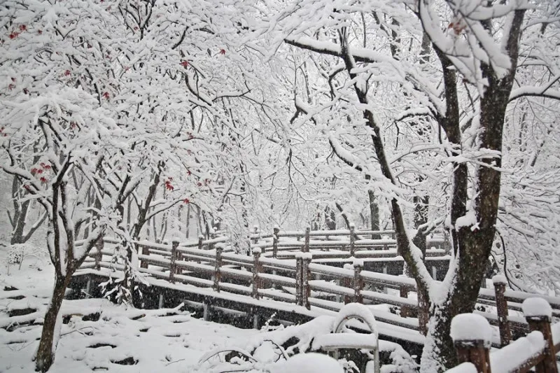 약수터 가는 길은 눈 무게를 견디지 못하고