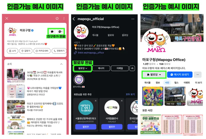 ② 마포구 공식 SNS 팔로우/친구추가하기