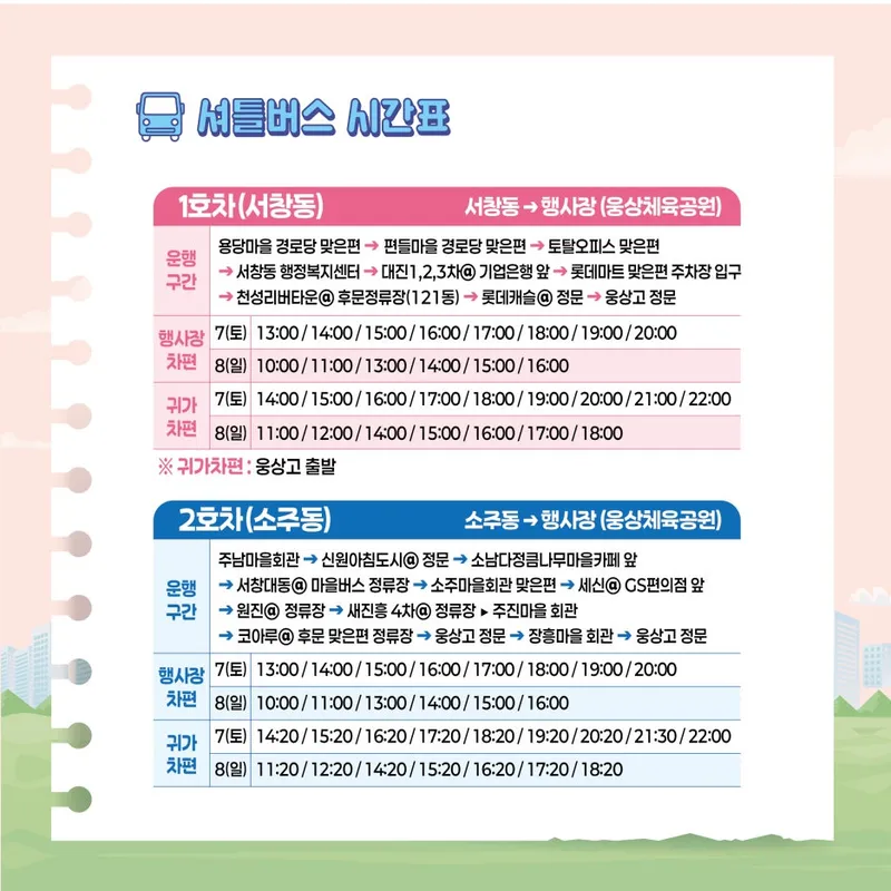 2024 양산웅상 회야제 셔틀버스 시간표