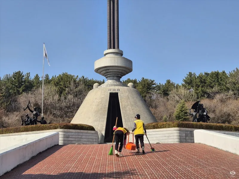 나무의 가지치기도 하고, 충혼탑 주변을 깨끗하게 청소 중이었습니다