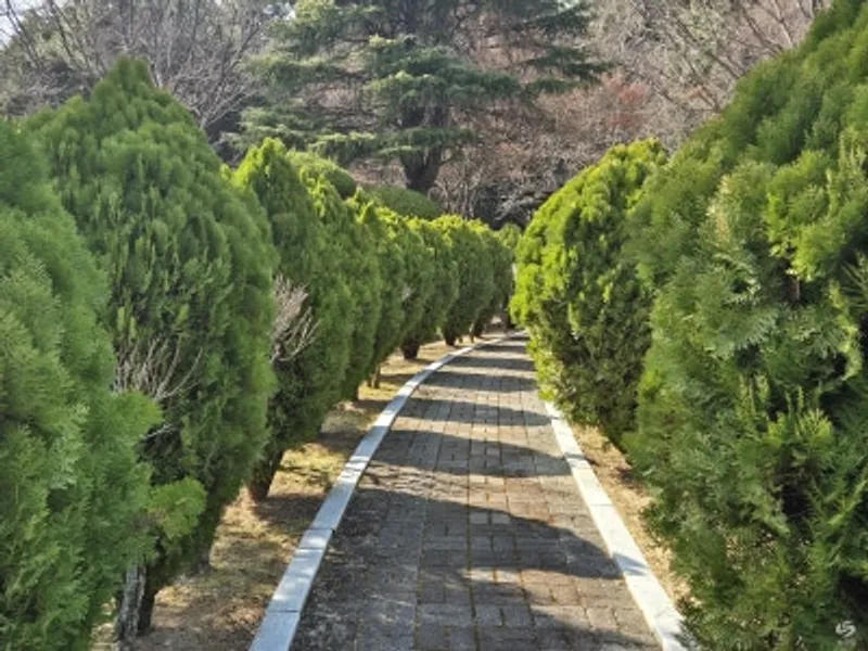 충혼탑 주변에는 잘 가꿔진 정원과 동백나무, 둥근 측백나무 등 다양한 나무들이 있어서 산책하기에도 좋은 곳입니다.
