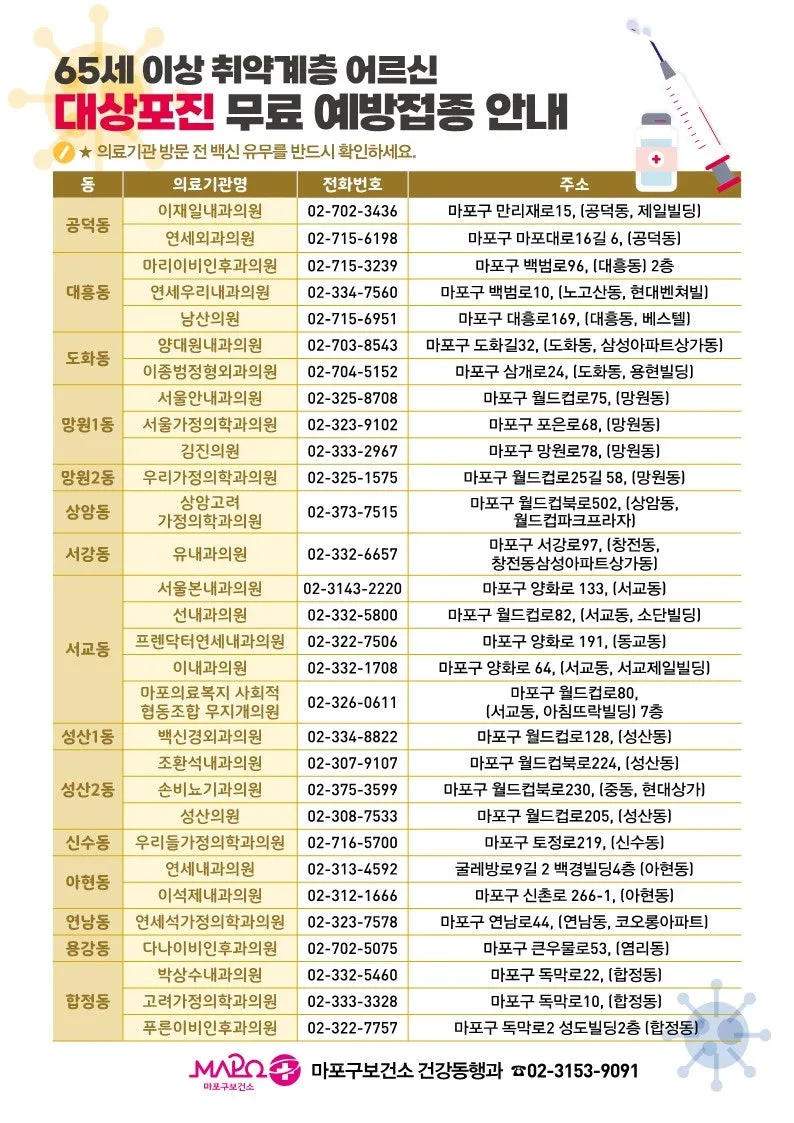 대상이 되시는 어르신들은 꼭 미리 예방접종 받으셔서