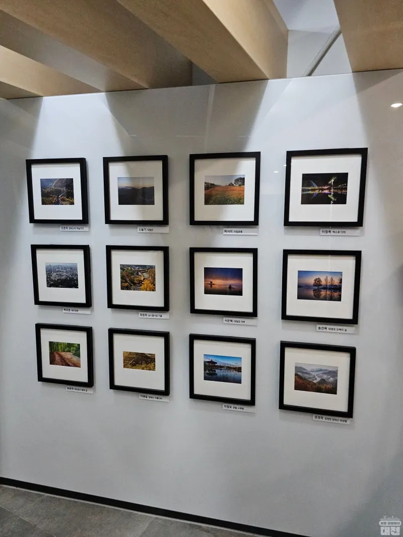 한쪽 벽면에는 대전시 전역을 찍은 사진 작가님들의 수상작들도 감상할 수 있었는데요. 대전에 이런 다양한 명소들이 있었나하고 감탄했답니다.
