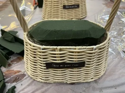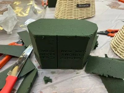 초록색 오아시스를 바구니 크기에 맞게 자른 후