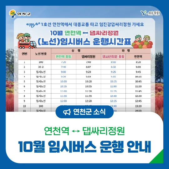 🚍연천역 ↔ 댑싸리정원 10월 임시버스 운행 안내