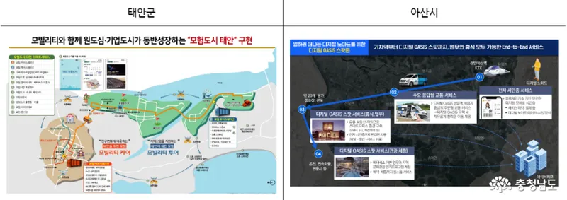 태안군과 아산시는 23년 5월 강소형 스마트시티 조성산업에 선정되어 200억을 지원을 확보 받은