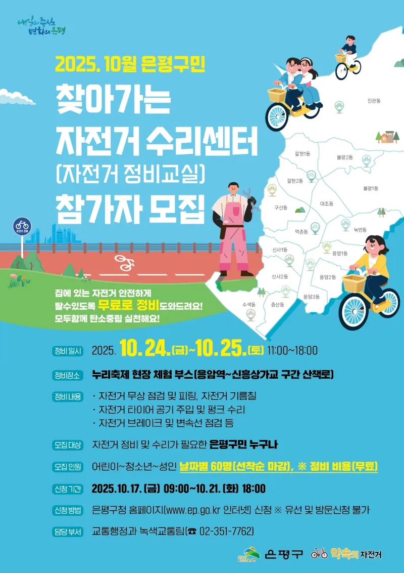 10월 은평구 찾아가는 무료 자전거 수리센터(자전거 정비교실) 모집(ft.은평누리축제)