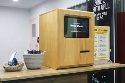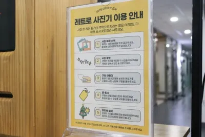 ZONE2에서는 포토월 앞에서 레트로 사진으로 추억을 남겨볼 수 있도록 구성되어 있습니다.