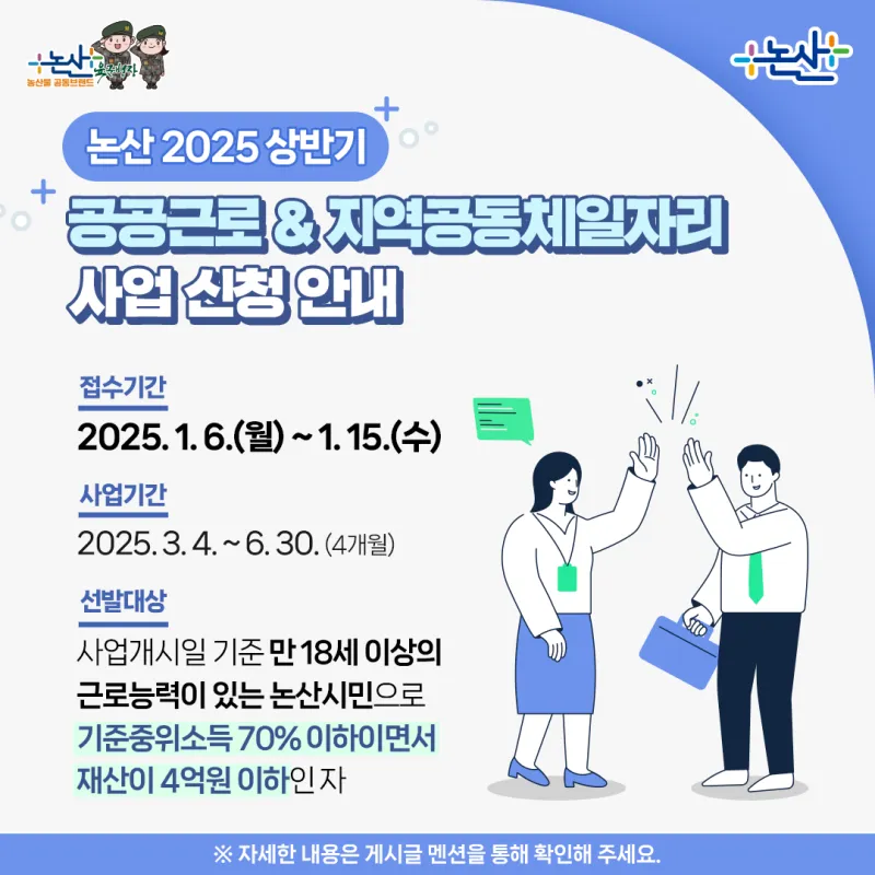 사업개시일 기준 만 18세 이상의 근로능력이 있는 논산시민으로
