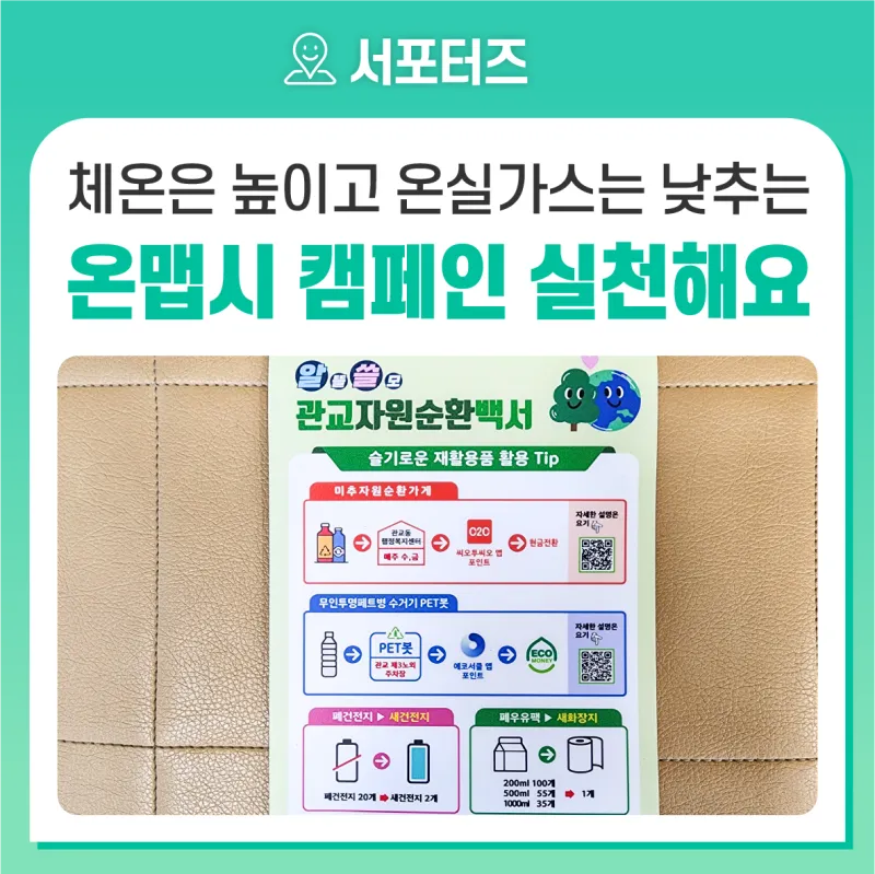 체온은 높이고 온실가스는 낮추는 온맵시 캠페인 실천해요.