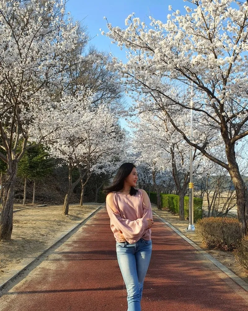 꽃이 예쁘게 핀 나무들 아래에서 사진을 찍거나, 한반도섬에 있는 다리 위에서 사진을 찍으면 인생샷 건질 수 있어요!
