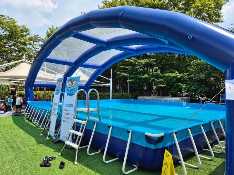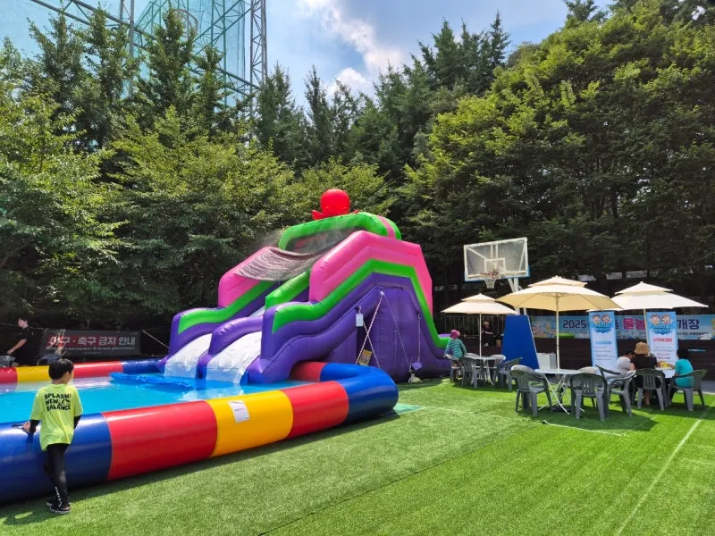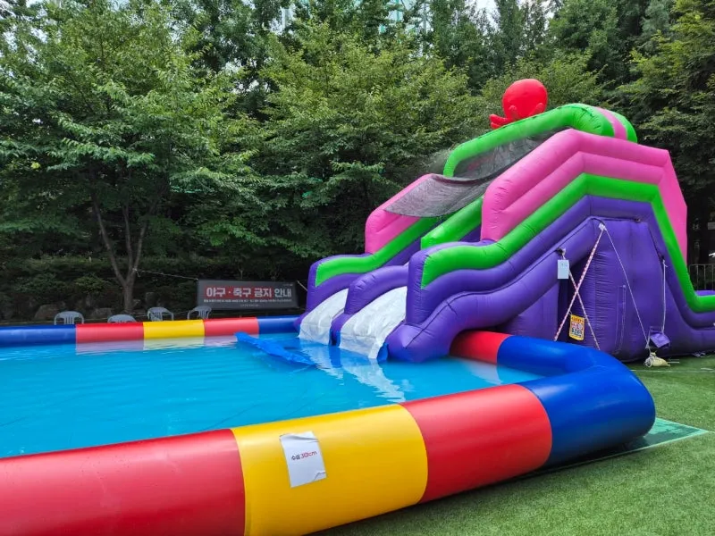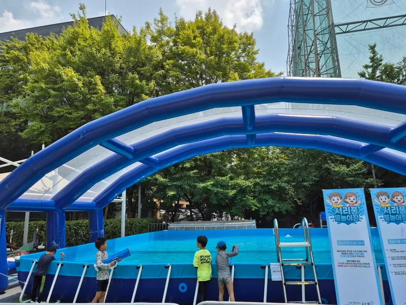 서초용허리공원은 에어풀, 워터슬라이드 시설이 있고, 가까운 가족 단위 방문객에게 인기랍니다.