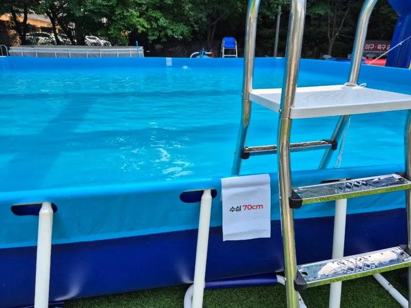 정말 깨끗한 게 눈에 보이고 안심되더라구요~ 거기다 조립식풀은 24시간 여과기 운영된다고 하니 대단하죠?