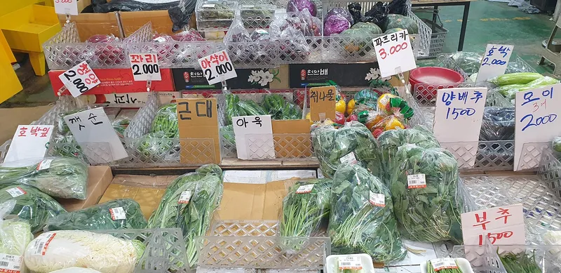 어느새 상인들이 정성스레 다듬어 놓은 푸른 채소와 제철과 상관없이