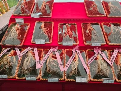 영주풍기인삼축제장에서는 또 다른 볼거리가 있었는데요, 바로 풍기 인삼 중에 예쁘고 멋진 인삼을 만날 수 있는 ‘우량인삼선발대회’입니다. 심사를 통해 뽑힌 인삼들을 구경할 수 있었습니다.