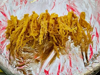 금강산도 식후경이라 축제장을 구경하다 보니 배가 고파졌는데요, 인삼튀김을 비롯해 다양한 음식이 있었는데 소개해 드릴게요. 쓴 것을 싫어하는 분들도 먹을 수 있는 인삼튀김, 바로 튀겨서 주니 더 맛있는 것 같습니다. 인삼을 꿀과 함께 먹으면 더 맛있어요.