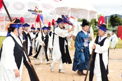 영주풍기인삼축제 기간 다양한 볼거리와 공연도 있는데요, 첫째 날은 풍기역에서 축제장까지 주세붕군수의 행차를 볼수 있었습니다. 1541년에 풍기군수로 부임한 주세붕 선생이 산삼의 공납 문제를 해결하고자 삼 재배를 시작해 풍기 지역이 전국 최초의 인삼재배지가 되었는데요, 그래서 매년 열리는 이 행렬이 더욱 뜻깊은 것 같습니다.