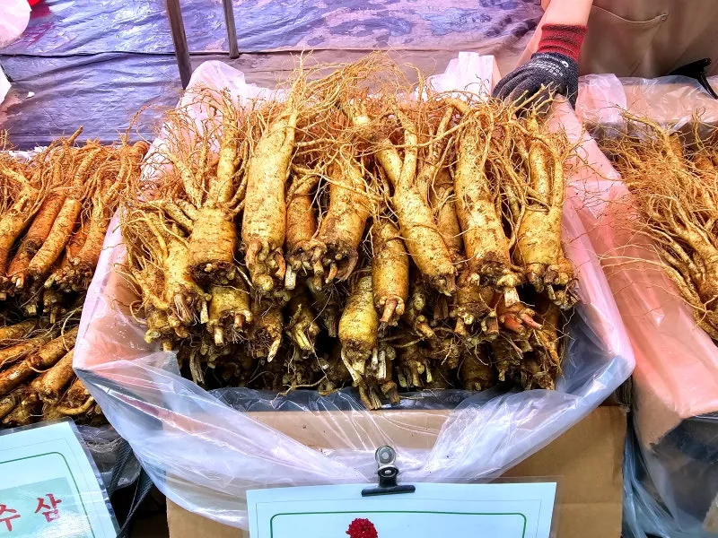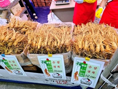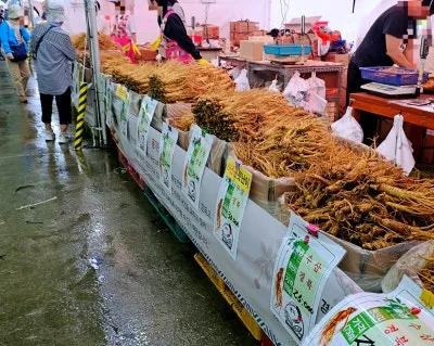 먼저 인삼축제장에 왔으니 인삼판매장부터 가봐야겠죠. 다양한 종류의 6년근 수삼들이 있는데 크기도 모양도 천차만별 마음에 드시는 거로 고르시면 되고, 선물용부터 튀김용이나 요리용으로 막 먹을 수 있는 인삼과 홍삼용 인삼까지 다양해서 구경하는 재미도 있습니다.