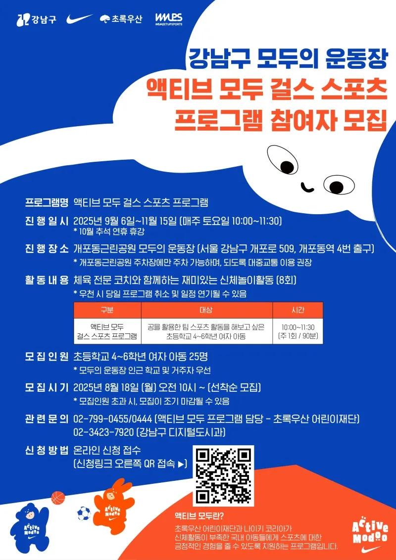 #강남구 #강남구청 #액티브모두걸스 #신체활동프로그램 #모두의운동장 #나이키 #초록우산 #건강한성장 #여아체육