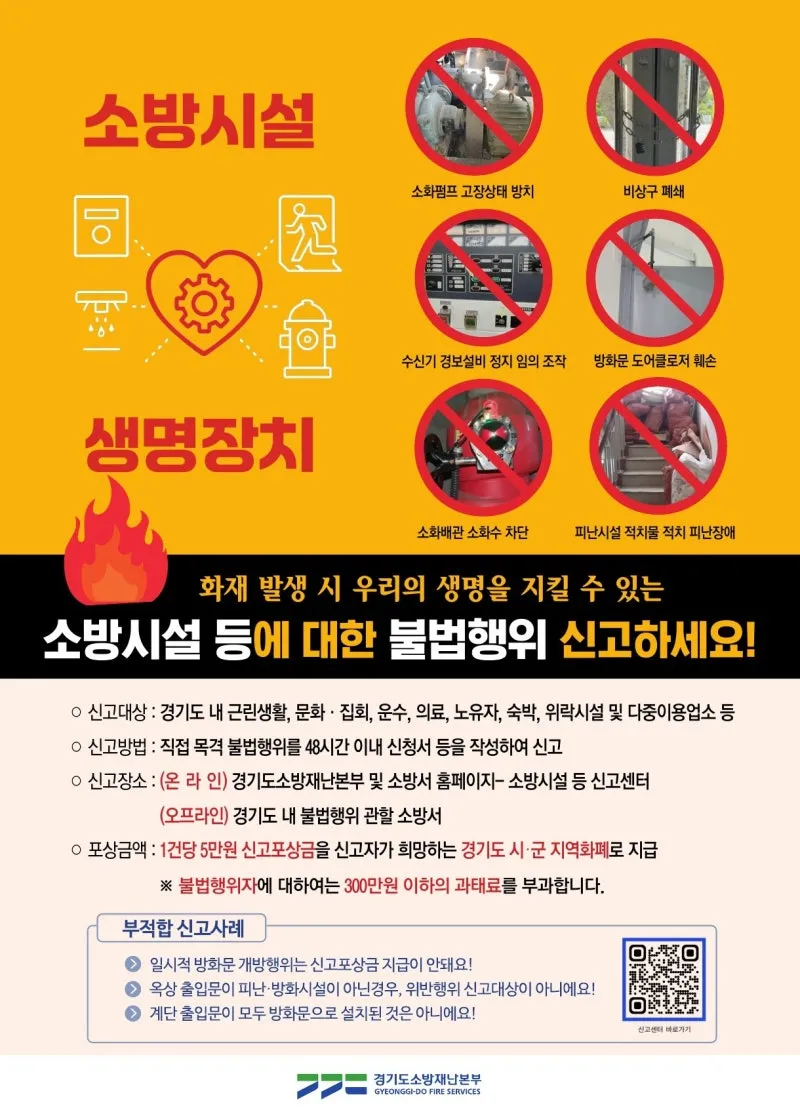 우리의 생명을 지킬 수 있는 소방시설, 불법행위 신고하고 포상금도 받아가세요!