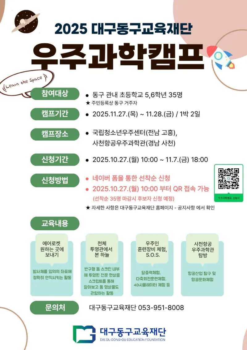▶️대구동구교육재단 홈페이지(dgeduf.or.kr)에 신청링크 및 QR 공지 예정