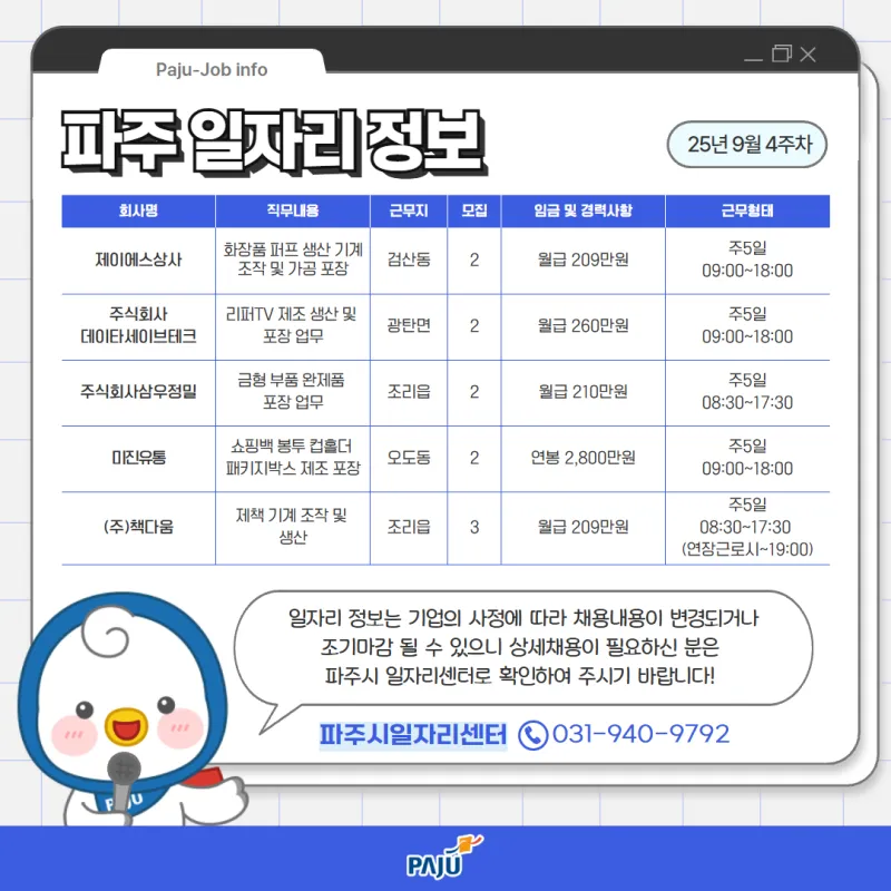 파주시일자리센터로 확인 또는 문의해 주시기 바랍니다.