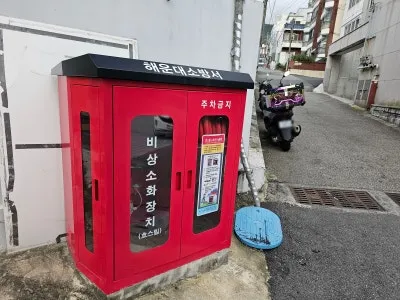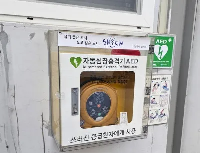그리고, 재송한마음시장 입구에는 비상소화장치와 함께 자동심장충격기가 비치되어 있어 안전 관리에 신경을 쓰고 있는 것 같았습니다.