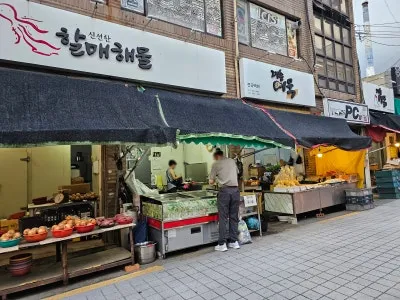 싱싱한 해물들을 판매하는 가게와 여름철 맛있는 과일들을 판매하는 가게 그리고 그날그날 만들어 판매하는 어묵집은 늘 인기가 있는 것 같았습니다.