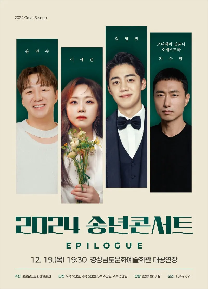 경남문화예술회관은 오는 19일 오후 7시 30분 대공연장에서 2024 송년콘서트 Epilogue 공연을 개최합니다.