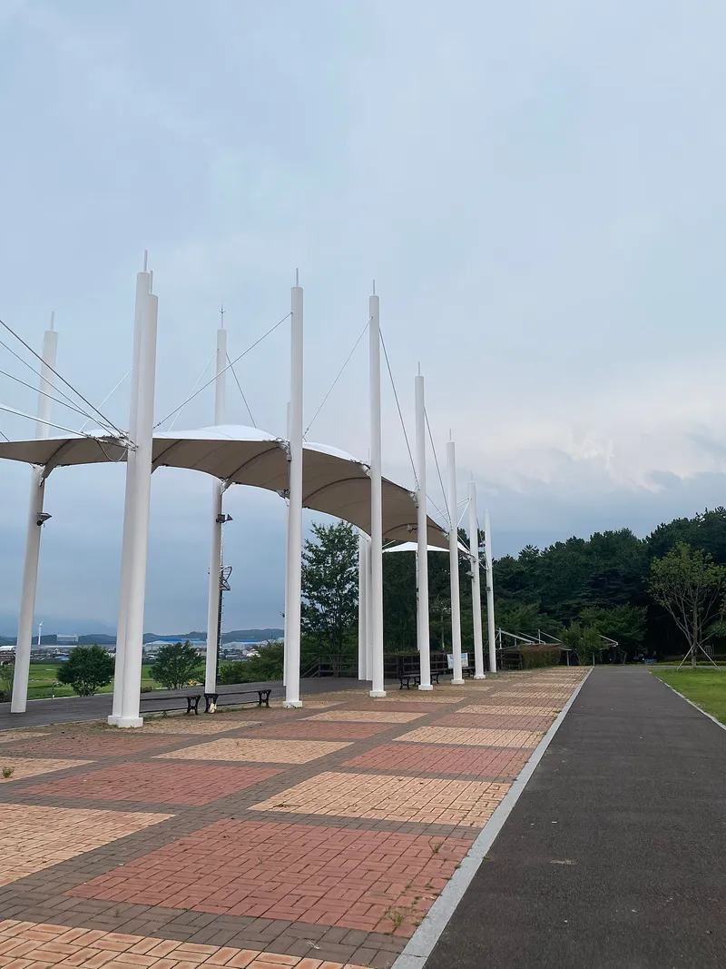넓은 잔디 운동장 한편에는 햇빛을 가리기 위한 거대 차광막도 설치되어 있습니다.