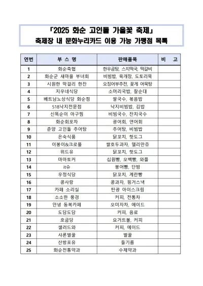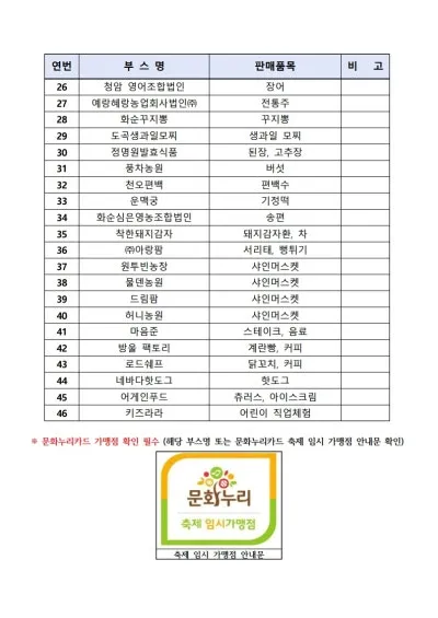 ▼ 축제장 내 문화누리카드 이용 가능 가맹점 목록 ▼