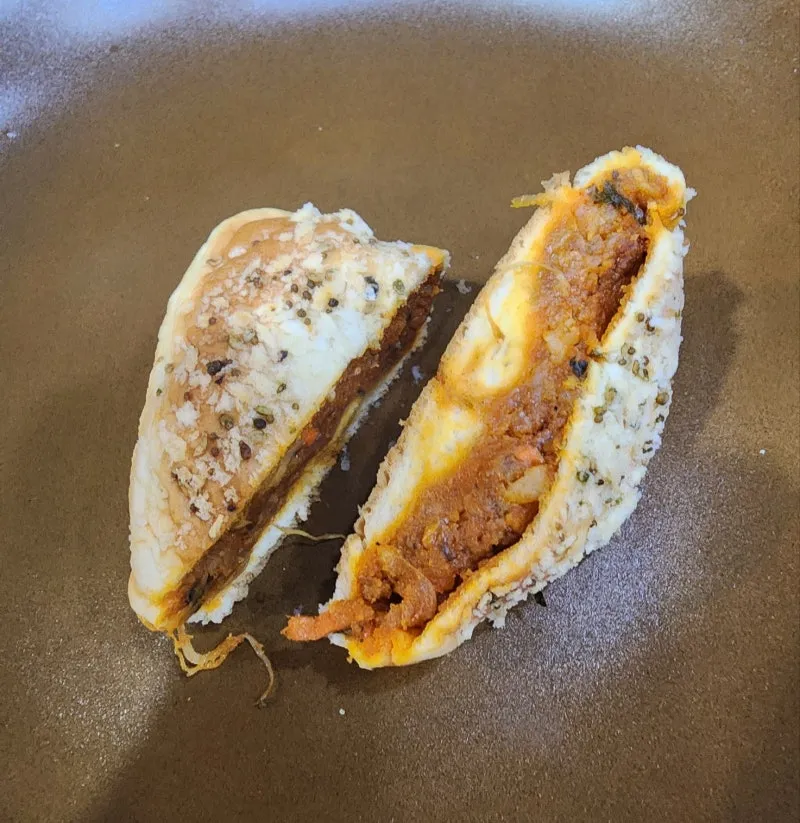 🍪매콤 비빔 주먹빵은 고소한 삼각빵 속에 여주쌀이 들어간 매콤한 비빔밥을 가득 채운 이색 메뉴다.