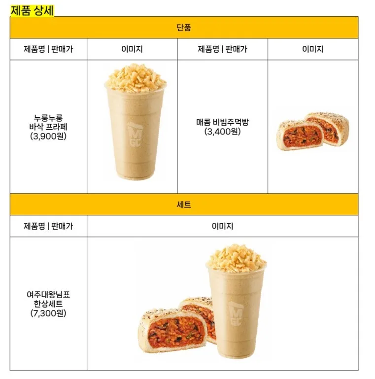 이번 협약으로 탄생한 신메뉴는 이름만 들어도 호기심을 끈다. 고소한 풍미가 살아 있는 ‘누룽누룽 바삭 프라페’와 매콤한 맛이 일품인 ‘매콤 비빔 주먹빵’이다.