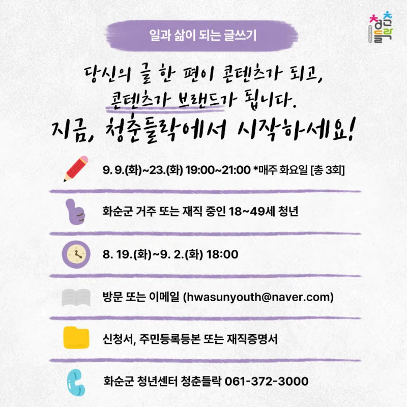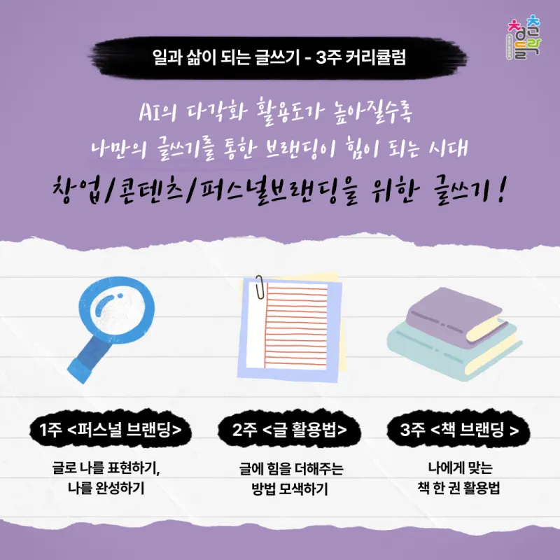 [청춘들락] '일과 삶이 되는 글쓰기' 교육생 모집