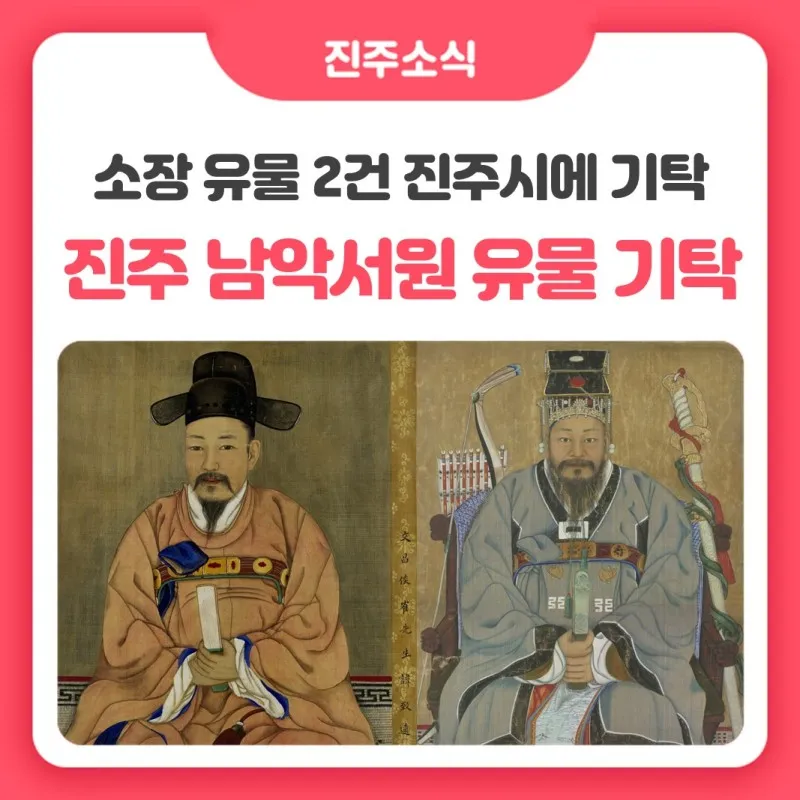 ‘경상남도 유형문화재 김유신 초상’과 ‘경상남도 유형문화재 최치원 초상’을 진주시에 기탁하였습니다.