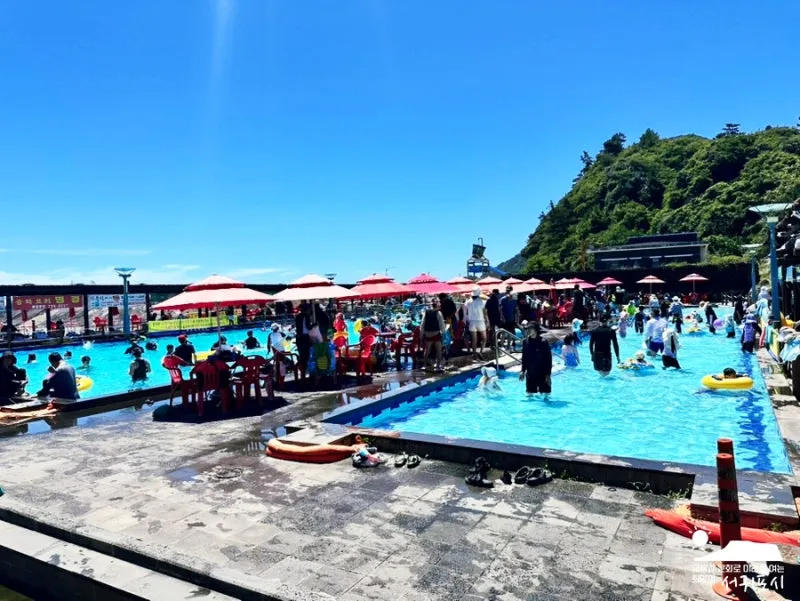 제주 안덕면 해안가에 마련된 무료 야외 수영장으로