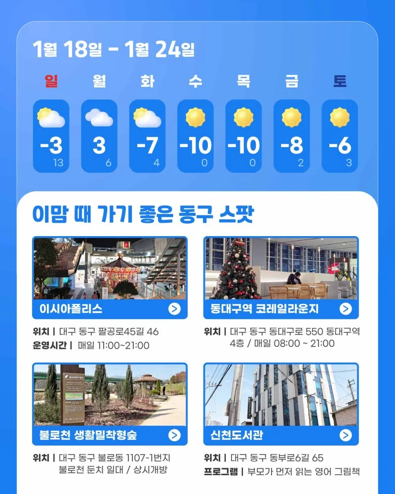 동구르르 픽! 1월 4주차 대구 동구 주간 날씨 가이드