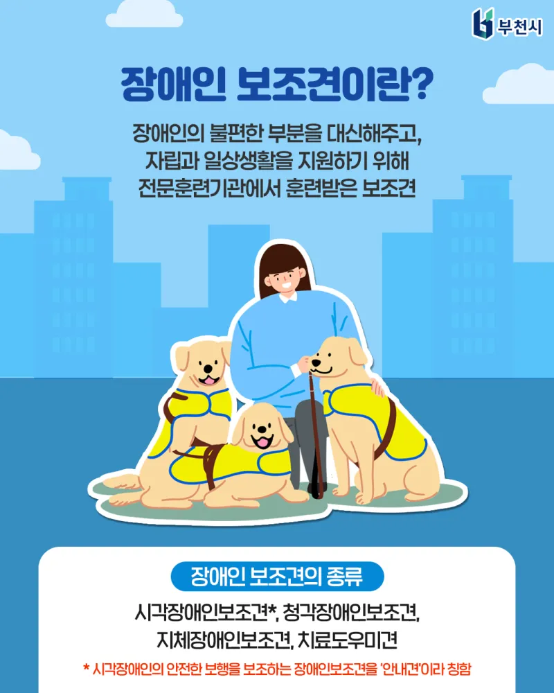 보조견과 장애인이 언제나 환영받는 도시, 부천시입니다. ????