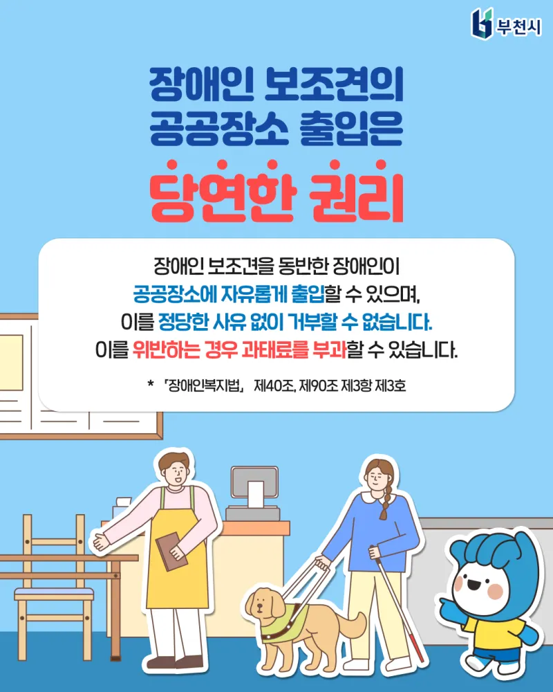 부천시는 장애인 보조견의 공공장소 출입을 적극 환영합니다!!