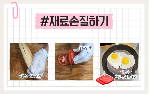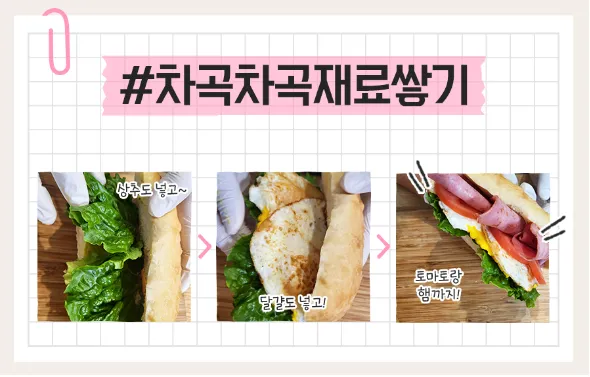 마지막으로 구운 햄을 대각선으로 집어서 넣어주세요!