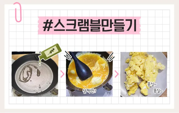 6. 달걀물을 빠르게 저으며 부드럽고 촉촉한 스크램블을 만들어줍니다!