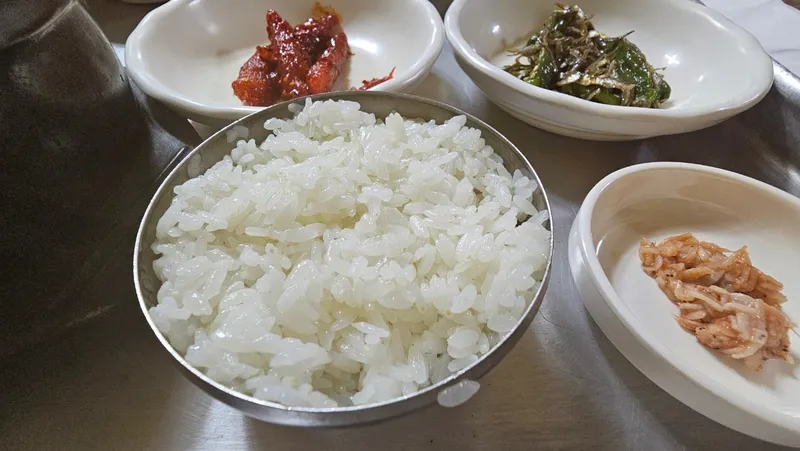뜨끈한 갓 지은 밥이라서 찰기 있고 반찬과 더욱 잘 어울립니다.