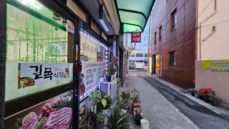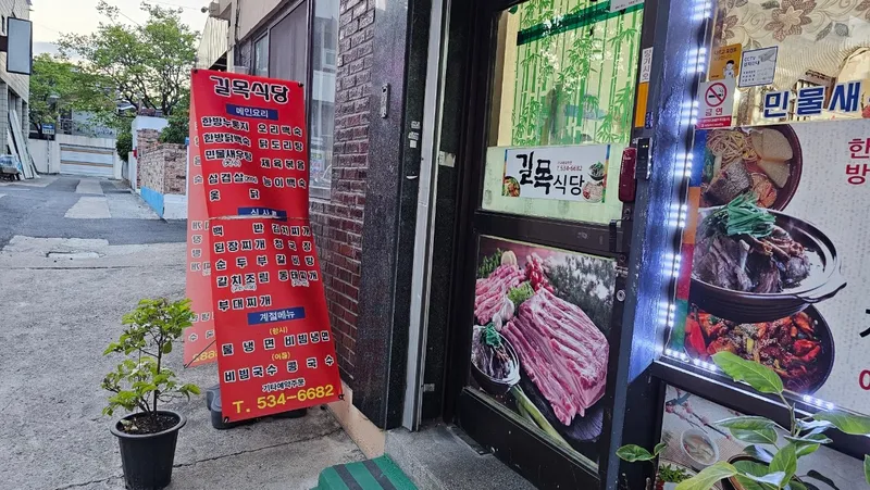 하나로마트 조금 지나 오른쪽 골목으로 들어가면 길목식당 간판이 보입니다.