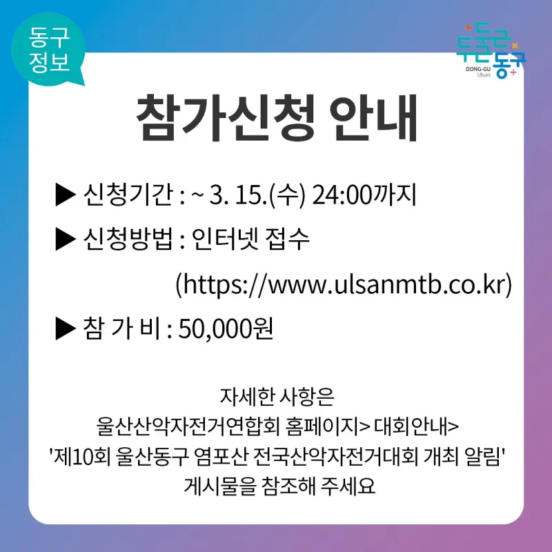 제10회 울산동구 염포산 전국산악자전거대회 참가자를 모집합니다.