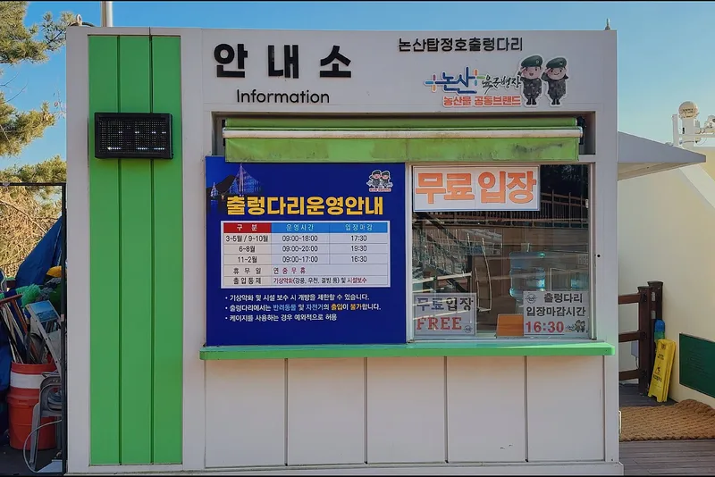 무엇보다도 논산 탑정호 출렁다리는 무료로 입장이 가능하며 연중무휴 운영되어 언제든지 부담 없이 방문할 수 있다는 것이 큰 장점입니다. 다만, 기상 악화나 시설 보수 시에는 개방이 제한될 수 있다고 합니다.