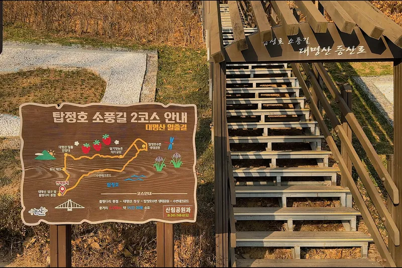 탑정호 주변에는 여러 산책로가 잘 조성되어 있어 출렁다리를 건넌 뒤에도 계속해서 자연을 즐길 수 있습니다. 탑정호 둘레길은 평탄하고 정비가 잘 되어 있어 누구나 편안하게 걸을 수 있답니다.