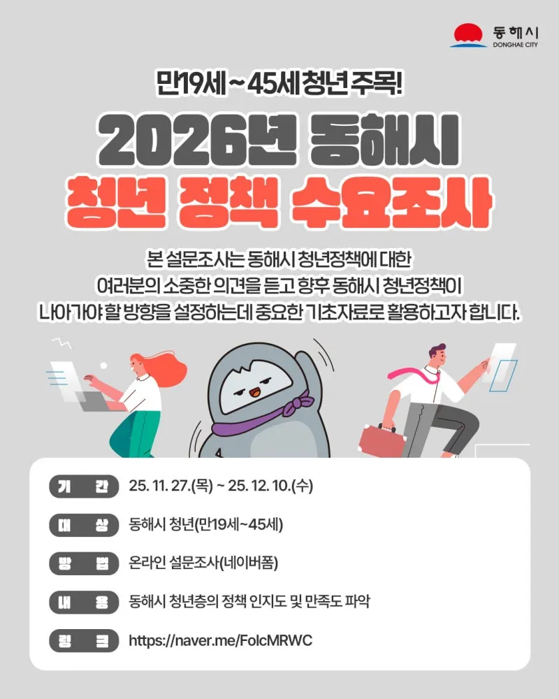 "2026년 동해시 청년 정책 수요조사"