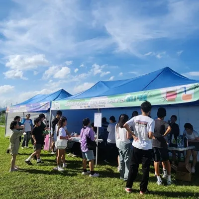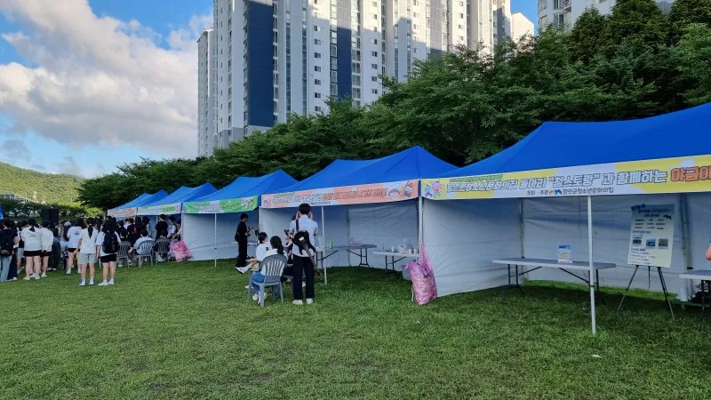 칠원읍 광려천에서 개최된 온니 청소년 어울림 마당 축제는 1부 부스 운영과 2부 학생 동아리 공연으로 준비되었습니다. 친환경 컵
